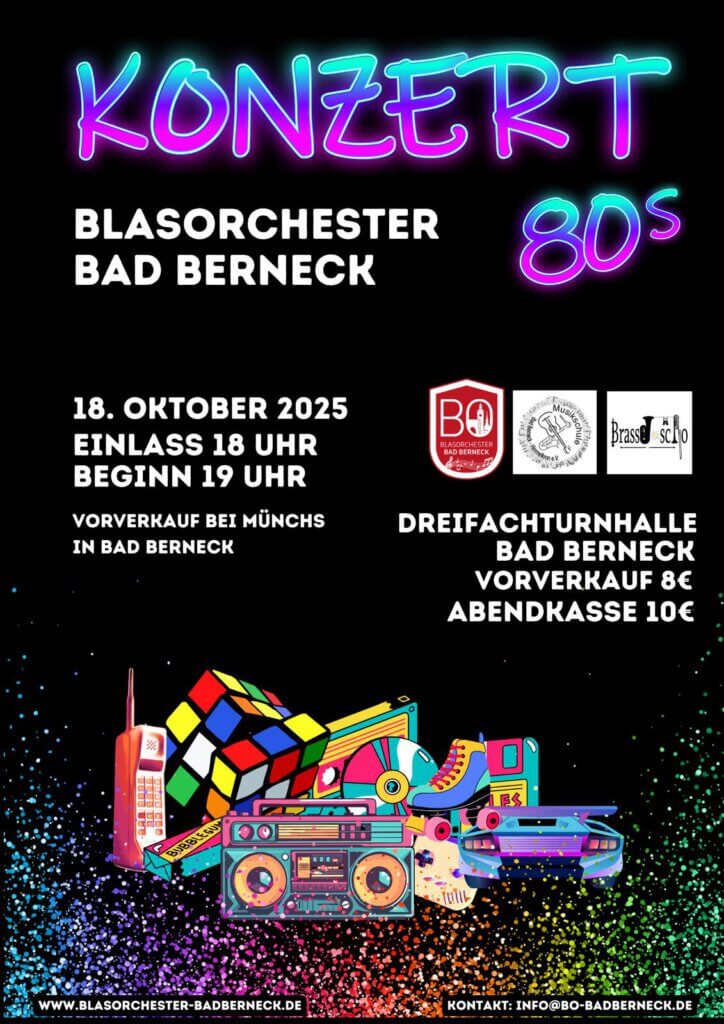 Das Blasorchester Bad Berneck lädt Sie ganz herzlich zum diesejährigen Jahreskonzert am 18.Oktober 2025 ein.